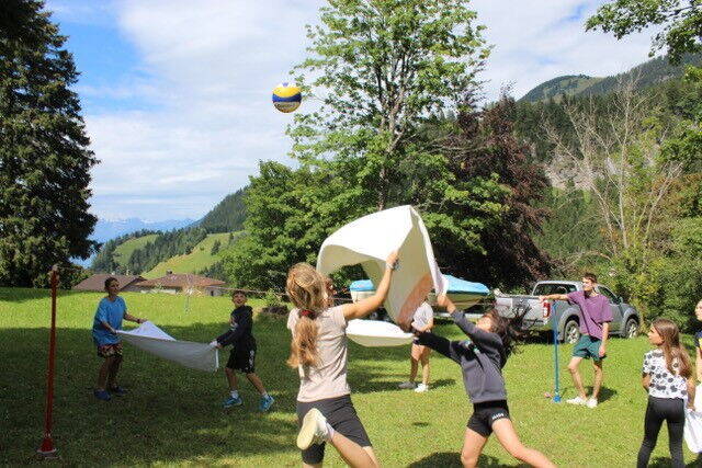 Nach einer grossen und abwechslungsreichen Stafette rund ums Haus, begannen dann die Teamwettkämpfe wie etwa Menschencurling, Volleyball oder «Catch the Gummibärli». Die Leiter haben uns dann angefangen mit Wasserpistolen abzuschiessen und so kam es zu einer Wasserschlacht.