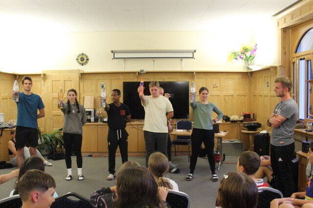 Am Abend konnten wir mit den Punkten, welche wir uns über den ganzen Tag erspielt hatten, auf die Leiter wetten. Diese haben sich in Sportwettkämpfen, wie etwa Liegestützen oder Flaschenhalten, gemessen und wir haben sie angefeuert.